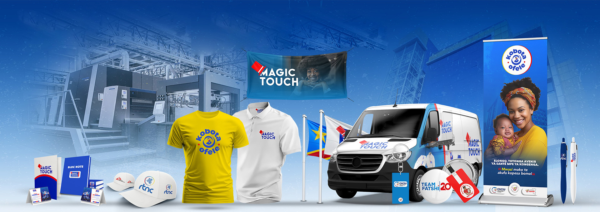 Nous sommes une entreprise 100% Congolaise et oeuvrant depuis plus de 10 ans dans le domaine de l'impression. Nous sommes spécialisés dans l'impression de tous types de supports et nos services sont adaptés à tous vos besoins.
